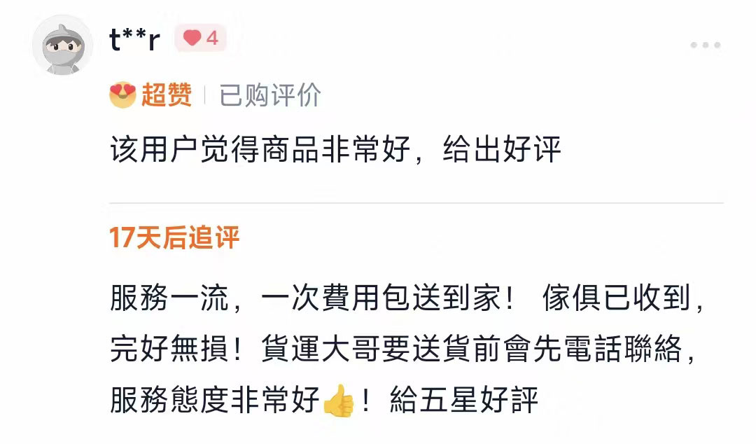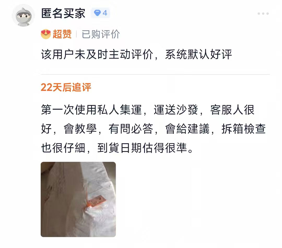 大型家具入倉後會通知您,方便您核對。您在提供快遞單號,防止有漏單的情況